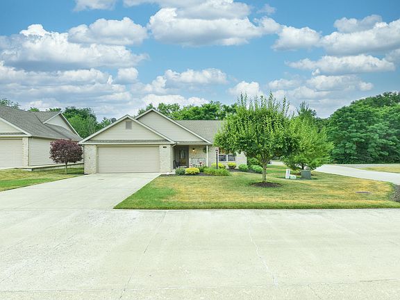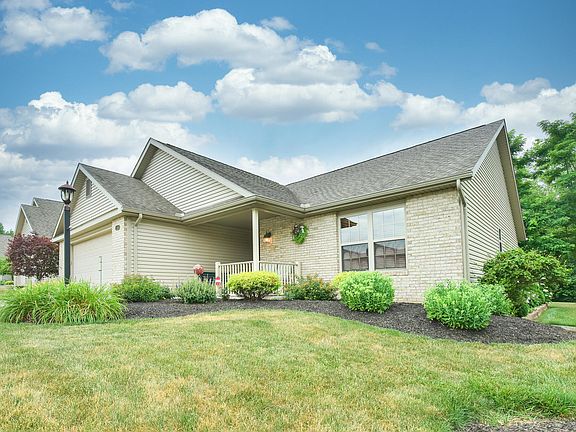 Well Appointed Condo in Bellefontaine! Over 1300 square feet of finished living space. This lovely home sits on a beautiful corner lot and features a covered front porch and nice composite deck over looking the woods and wildlife! The open living plan offers a spacious living room with trey ceilings, upgraded kitchen with beautiful tile back splash, stainless steel appliance package and solid surface counter tops and hard wood floors. There is a four seasons room that offers extra living space with tons of natural light. The two car garage has zero steps into the condo and has plenty of storage with the pull down attic access and storage closets. The HOA fee is $105/mo and covers lawn care and snow removal. This one is immaculate and move in ready. Don't delay make this your home today!