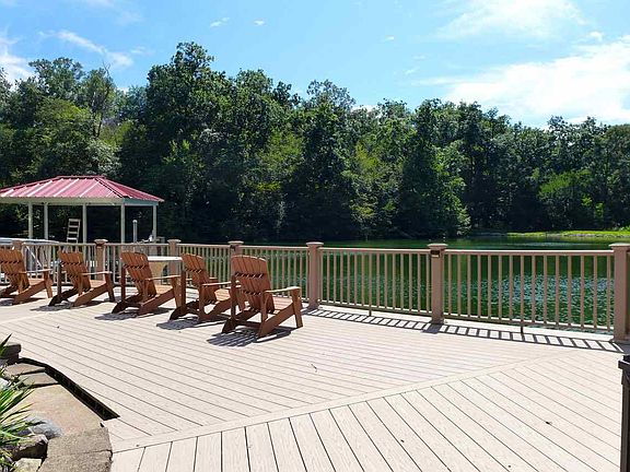Retreat to your own 54 acre paradise! Tucked behind the gates you will find a picture perfect, peaceful & private setting to relax or entertain family & friends with charming log style home, trails through the woods, deer stands & awesome 6 acre lake w/ boat lift, dock, deck, fountain & more! Over 3,300 finished sqft w/ open floor plan, cathedral ceilings, fireplaced GR, wall of windows & kitchen w/ GE slate appliances & copper farm sink. Finished LL w/ beautiful stained concrete floors, huge rec area, sitting room, full bath & 4th BR. Enjoy everything outdoors w/ fishing, hunting & play!