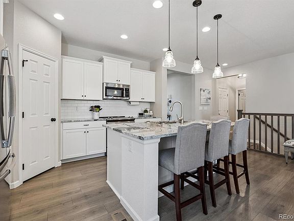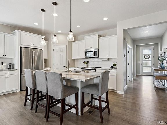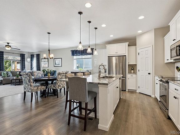 Step into this bright and spacious 2 bed, 2 bath with home office, ranch style home featuring lots of natural light throughout. The open-concept kitchen is equipped with granite countertops, white cabinets, stainless steel appliances, an island, a pantry, and is open to dining & living area. Ideal for cooking and entertaining. The cozy living room features high ceilings with a fan & light and access to the back patio via a large slider, perfect for indoor-outdoor living. Conveniently located laundry room with access to the primary bedroom closet and hallway. The spacious primary suite includes big windows, a ceiling fan, and an ensuite bath. Primary bath features double sinks, a walk in glass shower, a toilet room, and the spacious walk in closet. There's an additional bedroom and office with full hall bath off the main hallway, sure to keep your guests feeling welcomed! The large unfinished basement is bright and open with great potential. Enjoy your beautiful custom landscaped fenced backyard with new pergola! Live close to great schools, parks, trails, palisades park amphitheater, and many more! You're a short drive to Top Golf, Children's Hospital North, and the Orchard Town Shopping Center. Stellar access to Downtown Lafayette, Downtown Louisville, with easy commute off I-25 & more. This thoughtfully designed home combines comfort and style, making it a perfect fit for everyday living and memorable gatherings. You won't want to miss this one! Come see today!