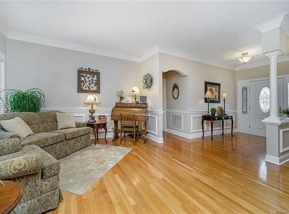 Stunning equestrian estate with custom brick home, 3 stall barn, fenced pasture, and storage for trailers/equipment. The winding drive through the trees beckons you home. Enjoy work or play: grab a session in the home gym, relax with a soak in the jet tub, saddle up for a quick trot in the pasture, grill with a view from the deck or curl up with a great book by the fire. This house is all about lifestyle - your retreat from the world (and yet a short drive to I-485 or Uptown). Upgrades and features throughout, well maintained, and boasting a perfectly portioned master with en suite and access to the large screened porch. Details like heated tile floors in the master bath, oversize garage with 1/2 bath, "hidden shower" and ample storage are sure to please. Take in the stream as you stroll across the bridge, gather around the fire pit or harvest fresh vegetables from your garden - so many ways to enjoy the grounds. Simply put, this home has it all and it's waiting for you.