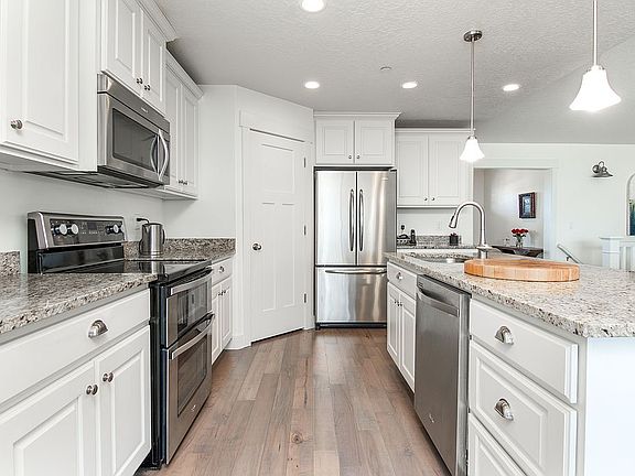 INTERIOR: Impeccably maintained 3591 sq ft rambler with 3 bedrooms and 2 full bathrooms in Elk Ridge Meadows on 0.20 acre lot. Main square footage 1743 square feet Basement (unfinished) 1848 sq feet with cold storage. The home has granite countertops, vaulted ceilings in master and craftsman stone gas fireplace in the great room and master bedroom. Tray ceiling in the living room, hardwood flooring, carpet and 18’x18’ tiles in the master bath with a separate tub and shower. The kitchen has an electric range but it is stubbed for a gas appliance and there is a mud room/laundry off the garage. The home also has a fire suppression system. EXTERIOR: Fully landscaped with full, automatic sprinklers both front and back as well as a drip system for the planters.