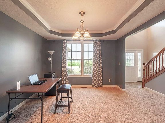 STUNNING 2 STORY HOME IN NEARLY NEW CONDITION! 9' CEILINGS ON MAIN FLOOR. TRAY CEILING IN DINING ROOM. UPGRADED CHERRY KITCHEN CABINETS WITH CROWN MOLDING, ISLAND, CORIAN COUNTERS, DBL OVEN, DESK AND EXPANDED BREAKFAST AREA THAT LEADS OUT TO THE REAR DECK. MAIN FLOOR LAUNDRY ADJACENT TO THE KITCHEN. THE DELIGHTFUL MASTER BEDROOM IS ON THE MAIN FLOOR WITH LUXURIOUS MASTER BATH. UPSTAIRS ARE FOUR MASSIVE BEDROOMS AND A FAMILY ROOM/PLAY AREA. UNFINISHED BASEMENT LETS YOU DREAM ALL THE THINGS THAT SPACE CAN BE AND IS PLUMBED FOR ANOTHER FULL BATHROOM. THE LOVELY YARD IS MOSTLY LEVEL. GREAT LOCATION AND AN EASY DRIVE FOR CRANE, BLOOMINGTON, BEDFORD COMMUTERS.