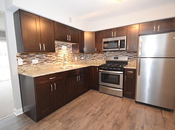 Totally remodeled 2 bedroom, 1 bath 2nd floor unit with private stair entry in rear of the building, as well as front entry. Good size living room with balcony, large coat closet , Eat in kitchen with newer stainless steel appliances, 2 bedrooms with ample room and closet space. Laundry room in the building on the 1st floor. Tenant pays Electric. Water and Heat is included in rent. All tenants 18 yrs and older must complete a credit check and background check at their expense. 650 credit report min. photo id's , pay stubs past 2 months. MLS Rental Application.