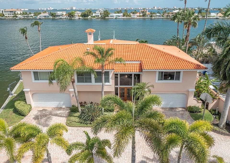 One of the most beautiful private lots in St Pete Beach. 250 feet on the water and a lot that's nearly 13,000 square feet. Bring a BIG boat. The lift will hold a 40,000 pound boat and there is room for 2 jet skis on davits. The pool is big and refreshing and sits right on the point of land overlooking the Intracoastal waterway. Only 5 minutes to the Gulf of Mexico. Many restaurants to go to by boat. The southeast view in the back assures your pool is in the beautiful Florida sunshine. Over 1500 Sq. Ft. of undercover space to get out of the sun and enjoy company in the shade. This home has about 3400 sq ft of living space with 4 bedrooms, 3.5 bathrooms and two, 2 car garages that will easily fit 4 cars. The home has a sizable kitchen with granite counters and high end stainless steel appliances, family room overlooking the intracoastal waterway, formal dining & living areas, as well as a BONUS family / game room on the ground level off of the pool. The pool area has a full bathroom. The bedrooms are all enormous. Two of the guest bedrooms share a Jack & Jill bathroom with 2 sinks. The master bath is beautifully remodeled. Windows replaced 2001- Roof Replaced 2008 - Pool Resurfaced 2006 - Tented in 2016 and full termite warranty is in place - Pool is a salt water pool. Don't delay as this is one of the nicest lots in St Pete Beach. Just in case you are unaware, St. Pete Beach is the best of all the Pinellas County Beaches. This area has more restaurants and entertainment venues than all the other beaches combined. I don't have to tell you, this place is going to go fast.