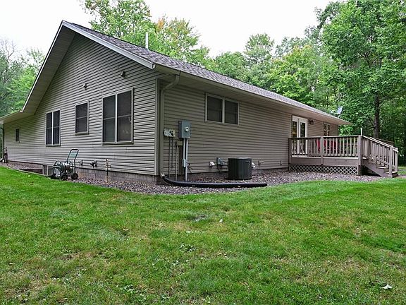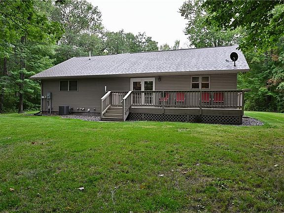 One of Northwest Wisconsin's Premiere Golf Courses is where you will find this home. This well cared for home is at the south end of the 12th hole, hidden in a park like setting. Two levels of living space to accommodate family, and give them all their own space. Beautiful stone fireplace on the main level and freestanding gas in the lower. A main level laundry, ceramic countertops, open floor plan and genuine wood flooring will check all the right boxes, and give you the perfect place to call home. Over 4 acres of space to create the country ambience you need at the end of a long week. This property has all the things! Blacktop driveway, security system, sprinkler system to keep the yard as beautiful as the greens, and room to create your own country oasis. Motivated sellers would like to move before the snow!