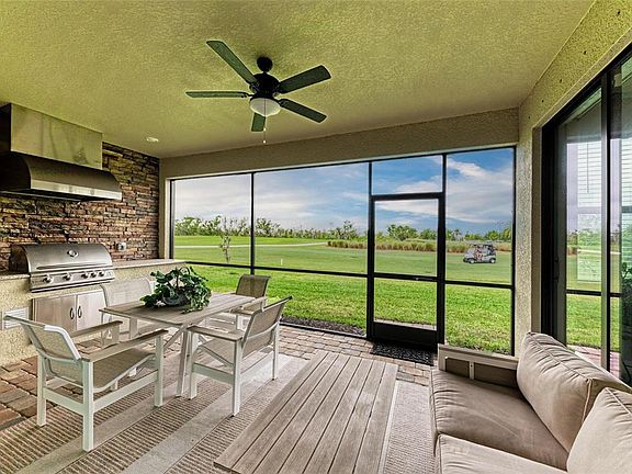 Repositioned to reflect today’s market – now an even greater value! Lowest price per square foot of all single-family homes in Lakewood National Golf Club, this is a new opportunity to acquire this exceptional residence at revised pricing. If you are seeking a dynamic yet refined lifestyle, look no further. This spacious single-family deeded golf home is on a great homesite with golf course views and walking distance to all of the amazing amenities offered in this coveted community. Offering four bedrooms, two baths with 2,248 interior square feet providing easy, relaxing and maintenance-free living in the gated community of Lakewood National Golf Club. The Isabella floor plan showcases an open-concept design with a split-bedroom layout, providing privacy and flow. Interior highlights include custom paint, crown molding, Hunter Douglas blackout blinds and ceiling fans in each bedroom, living room and patio. The kitchen features a natural gas range, built-in wall oven, generous pantry and abundant cabinet storage. The oversized primary suite includes two walk-in closets and plenty of natural light. Enjoy Florida’s indoor-outdoor lifestyle from the screened lanai, complete with an outdoor kitchen and amazing light all day. This pool-ready golf view lot is loaded with opportunity. The two-car garage and proximity to resort-style amenities enhance the home's appeal. All this, plus owners in Lakewood National Golf Club enjoy deeded golf membership giving owners the ability to play 36 holes of championship golf year-round. The Commander course at Lakewood National Golf Club was named No. 1 Golfers’ Choice and No. 1 Top Course in Florida by Golf Advisor. Lakewood National Golf Club offers gated, maintenance-free living with extraordinary amenities that include 36 holes of Arnold Palmer-designed golf courses, a zero-entry heated pool with cascading waterfalls and lap lanes, poolside tiki bar and café, fitness center with group exercise classes, an on-site full-service spa, eight lighted Har-Tru tennis courts, bocce, pickleball, several satellite pools, and a stunning 28,000-square-foot clubhouse which offers fine and casual dining, an expansive bar and lounge, men’s and ladies lounges and locker rooms, conference and meeting space, a full-time lifestyle director who keeps residents’ social life fun and active with trivia night, karaoke night, live concerts on the green, extravagant holiday parties, wine-tasting dinners and more. Lakewood National Golf Club hosts the annual Korn Ferry Tour’s LECOM Suncoast Classic. Incentives if closing before January 2026.