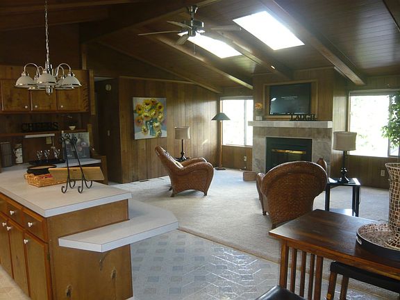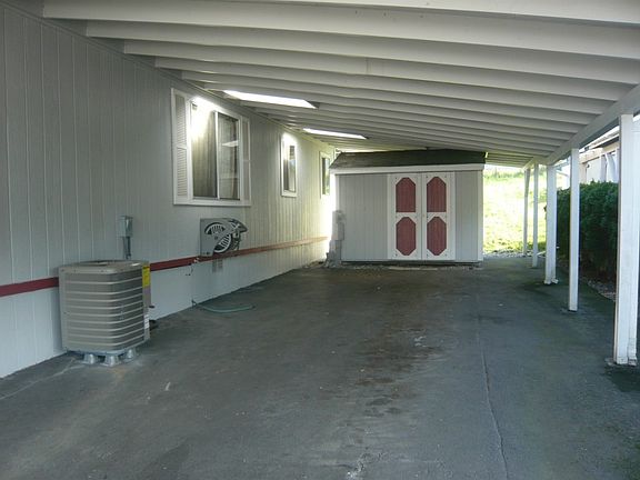 Super Affordable Senior living at its finest! This lovely home is open and bright and is located in a close-in, yet private, scenic setting. Vaulted ceilings & skylights enhance the very spacious 1848 s.f. plan. The gigantic master suite includes a walk in closet + 5 piece bath. Two additional bedrooms (opposite end of Master) share a continental bath. Special features include: a propane fireplace; AC/heat pump; huge covered deck; extra large carport + large, matching storage shed! A MUST SEE!