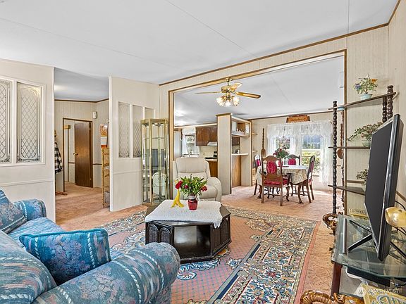 Welcome to Creekside- a conveniently located 55+ community. Enjoy affordable living with this thoughtfully laid out mobile home. As you enter, you’re greeted by tons of natural light filling the home through all of the large windows. The heart of the home features a spacious living room, dining room, breakfast nook and nicely sized kitchen. You’ll also find the laundry room with access to the back porch nearby. Down the hall, you’ll find the generously sized primary bedroom with walk-in closet and ensuite bathroom. Across the home are the other 2 bedrooms with bathroom. Outside, you’ll be able to take in the fresh air on the front deck. A storage shed, carport and parking slab round out this home. Come make it yours!