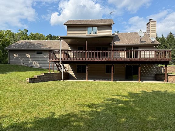 Welcome to the country! This 11.5-acre property with ?3 bed single-family home and large pole barn ?checks so many boxes?. Built in 1986 this home features three bedrooms. Two bedrooms on the main level and a second-floor primary bedroom with an attached bathroom. The main level kitchen area is open to the eat-in dining area, and the living room is near the fireplace with sliding door to the elevated covered deck with a large patio below that.? The refrigerator, stove, dishwasher, washer, dryer, and deep freezer all stay! Some updated Mechanicals can be found in the home. The lower level boasts a full walkout exposure and a very large rec room with a wet bar area attached as well as a finished half bath with a walk-in shower yet to be completed. On the other side of the wall, there is loads of storage space. Step outside to a wonderful Green Yard complete with a large metal pole barn with multiple doors, a garden shed, and acreage with loads of woods and paths for enjoyment. Park all the toys in the three-car garage or use the pole barn for expansion area for projects, workshops or whatever you can dream up. A wonderful school system with K through 8 that feeds into the Hononegah High School System. Some cosmetic updates could be done but at this price you can't beat it. Set you're showing up quickly?! This kind of acreage with this kind of house and the pole barn won't last for long