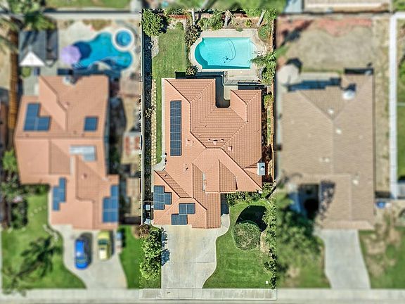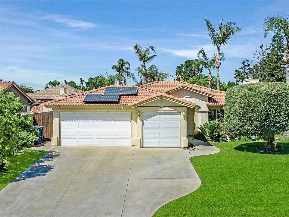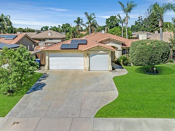 Take a look inside of this gorgeous 3-bed, 2-bath home with OWNED SOLAR, a 3-car garage, and a sparkling swimming pool that is nestled in a family-friendly SW Bakersfield neighborhood. Heading through the front door, you'll find the open living area with a brick fireplace and large windows allowing natural lighting. The kitchen is equipped with granite countertops, white appliances, and a breakfast table area leading to the backyard. The dining room is spacious enough for a large table for the family and friend gatherings. Each of the three bedrooms come with carpet, ceiling fans, and generously sized closets. The restrooms have tile countertops and large vanity mirrors. Stepping out back, you'll fall in love with the patio area, fenced swimming pool, spacious side yard, large grass area, and the mature landscaping. Do not miss your opportunity, schedule your private showing today!