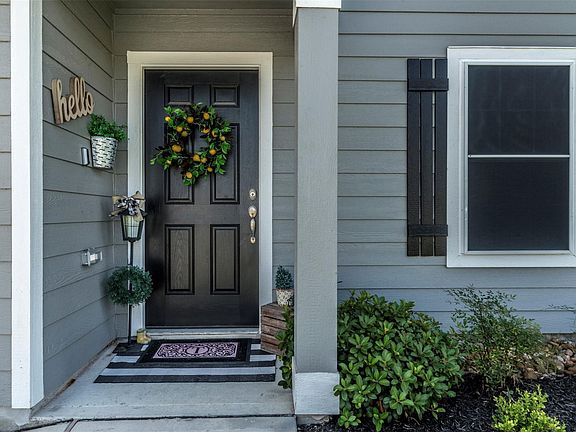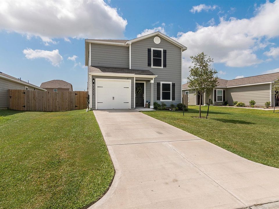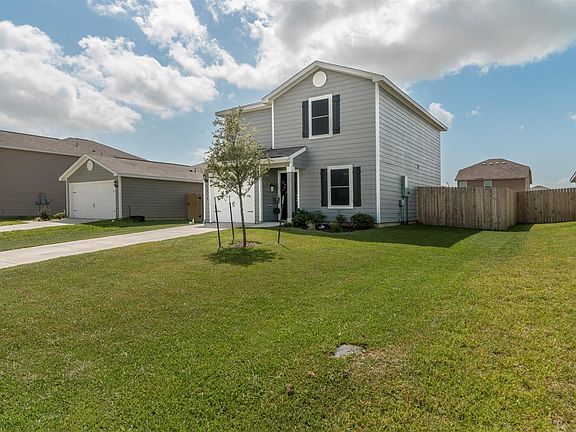 Outstanding 3 bedroom, 2.5 bath on a large homesite!! TONS OF UPGRADES!! Installed front & rear gutters, built-in dog kennel, solar screens, 13" tile in all wet areas, digital thermostat, LED fence lighting, upgraded fans/fixtures, beautiful wood laminate floors, security system with 2 cameras & more! Kitchen with granite counters, refrigerator stays! Huge primary bedroom, bathroom and walk-in closet! Spacious covered patio with plenty of privacy as property backs to easement - no rear neighbors! 15'x23' patio plumbed for outdoor kitchen also has electric to add more fans or personalize as you wish! Oversized garage with door opener. Zoned for wonderful schools in sought after Barbers Hill ISD. No Harvey or Imelda flooding! A must see!