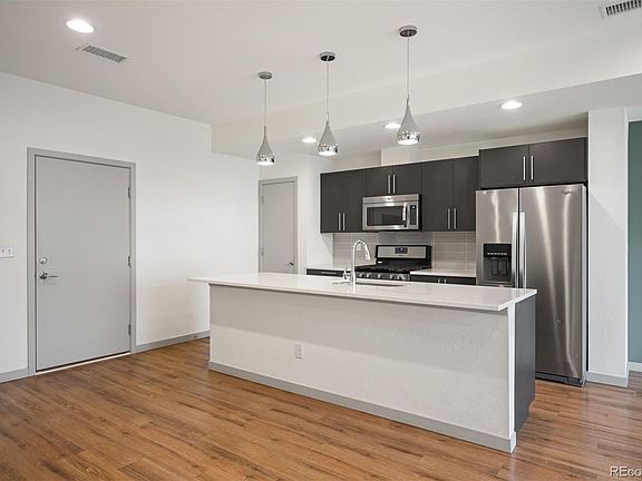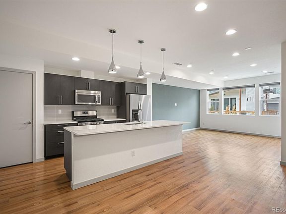 Totally unique development with 26 residences - 11 are townhomes.  Like a hidden gem that's close to everything.  Bike and walk to all your favorite places like Tennyson Street, Highlands and LoHi.  Jump on the highway to beat the ski traffic.  It's all super close!  This enclave offers a lovely community garden and a path directly out to 38th.  Enjoy the view from your spacious rooftop deck with view in multiple directions.  With a calm urban contemporary vibe the open main floor has a large kitchen with eat-at center island, stainless steel appliances and gas stove and a pantry.  The Living Area is light and bright with a wall of windows that overlooks a grassy area.  Upstairs you'll find a large Primary Suite with large en-suite bath,  custom walk-in closet and a private balcony.  The second bedroom is en-suite with a full bath, it's own walk-in closet and another balcony.  This unit is better than new with window coverings, storage systems, all appliances including front load washer and dryer, new carpet - it's perfect!  Come see this one - it is special and it is the best!