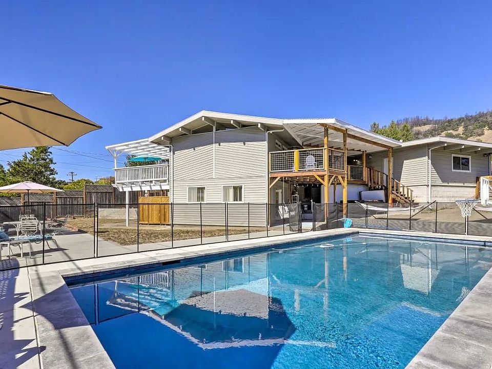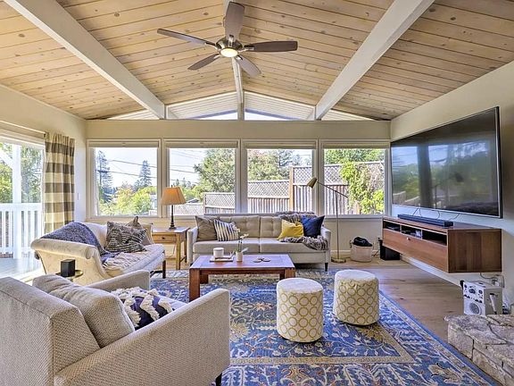 Newly remodeled Santa Rosa retreat w/ pool and hot tub! 31-day minimum rental. Available as a short-term month-to-month rental or a longer-term lease (up to 12 months) if desired. Perfect for families in transition, vacation rental, corporate rentals, or traveling nurses in need of temporary furnished housing. A hidden gem! Gorgeous, fully furnished, custom home in St. Francis Acres. 4 bedrooms, 2 bathrooms, bonus room/game room and office space are located downstairs via their own private entrance. Huge living room, vaulted ceilings, massive windows, skylights, dining room, breakfast bar. Stunning views surround this 2,100 sq. ft. home. This beautiful home is tastefully decorated and designed to meet all your needs both indoors and out. A stunning yet cozy property inside that also includes two huge outdoor decks, massive pool, and eight-person hot tub. This is a beautiful home that you will want to see in person. 4 bedrooms 2 bathrooms Bonus room/game room Bonus room/office Pool Hot tub Central AC Pet friendly Heat Source: Central Heat and Air Conditioning Fencing: Back yard is fully fenced Tesla Wall Connector EV charger Bedroom 1: King bed with ensuite bathroom Bedroom 2: Queen bed Bedroom 3: Two twin beds Bedroom 4: Two twin bunk beds Bonus room/game room: Sofa bed Bonus room/office Fully furnished, includes all dishware, silverware, microwave, coffee grinder, coffee maker, toaster oven, air fryer, etc. Washer/dryer, three TV's (home theater with all the streaming services), WiFi, outdoor gas grill, outdoor heat lamps, hangers, linens, towels, multiple furnished decks, parking, gas fireplace, breakfast bar. The hot tub is always on and ready for use. The pool maintains a temperature of about 70 to 80 degrees in the summer. Multi-level backyard also features plenty of space for gardening, plus hammocks, outdoor heat lamps, and outdoor dining. Guests have access to the entire main house, consisting of 4 bedrooms and 2 baths. Guest also have access to the bonus room/game room downstairs via a separate entrance. One section of the garage and a portion of the basement *might* be used for owner storage if the tenants wish to use any of their own furniture instead of the furniture that comes with the house. Entire outdoor property is for guests to use. Make an escape to the heart of the California wine country at this 4 bedroom, 2 bathroom home. This Santa Rosa vacation rental has everything you need for a refreshing getaway, from the outdoor pool and hot tub to the game room and stylish interior. Have a karaoke night, relax in the hammocks, or play some basketball in the driveway. Many world-famous and small, family-owned wineries are within a short drive. Excellent restaurants, shopping, and other amenities and conveniences are nearby in Santa Rosa, Kenwood, Sonoma, Napa, Glen Ellen, Sebastopol, and Healdsburg. Many great state parks and hiking trails are nearby (Spring Lake Park, Howarth Park, Trione-Annadel State Park). Tour and taste at a local winery, hike one of three nearby state parks, play golf at Valley of the Moon Club, or head to the Sonoma County Fairgrounds for a day of family fun. If you enjoy a night out at the casino, the Graton Resort and Casino is outstanding. St. Francis Acres is located five miles from Downtown Santa Rosa. INDOOR LIVING: Fireplace, desk, large dining table, breakfast bar, ensuite bathroom, walk-in closets INDOOR ENTERTAINMENT: Smart TVs, streaming, video library, Nintendo Switch docking station, game room, board games, books, electric piano, karaoke machine OUTDOOR LIVING: Private yard, pool toys, patio, outdoor heat lamps, gas grill, dining areas, basketball hoop, hammocks KITCHEN: Cooking basics, spices, dishware/flatware, dishwasher, refrigerator, stove, microwave, coffee grinder, coffee maker, coffee/tea/snacks, toaster, toaster oven, ice maker, water filter, garbage disposal GENERAL: Free WiFi, central heating & air conditioning, linens/towels, washer/dryer PARKING: Driveway (2 vehicles), street (1 vehicle, first-come, first-served), 3 vehicles max Tesla Wall Connector EV charger PARKS & OUTDOORS: Howarth Park (3.2 miles), Trione-Annadel State Park (3.6 miles), Spring Lake Park (4.7 miles), Sugarloaf Ridge State Park (8.6 miles), Bothe-Napa Valley State Park (16.1 miles) AIRPORT: Charles M. Schulz Sonoma County Airport (12.5 miles) Proximity to wineries: Numerous world-famous wine tasting regions within a 20-mile radius, including Sonoma's Valley of the Moon, Russian River Valley, Alexander Valley and Dry Creek Valley. Nearest River Beach: Steelhead Beach, Forestville Nearest Ocean Beach: Bodega Head, Bodega Bay 31-day minimum. Month-to-month or longer-term lease available. Rates: $4,900 per month. Guest pays PG&E. All other utilities included (water, sewer, trash, internet, and weekly pool/hot tub service). 31-day minimum. Month-to-month or longer-term lease available. Rates: $4,900 per month. Guest pays PG&E. All other utilities included (water, sewer, trash, internet, and weekly pool/hot tub service).