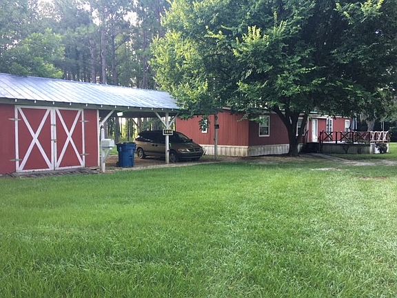 Here's a mobile home on attractive 2.41 acres, that has some pecan and pine trees on it. Home features 3 bedrooms and 2 baths. Has a living room as well as family room, with carpet. Kitchen with appliances. Dining room. Master bedroom with carpet and master bath with tub/shower combo. Additional bedrooms are nice-sized. Guest bath with tub/shower combo. Front deck for sitting back and relaxing as well as back deck area. Detached covered parking with storage.. Central air/heat/electric. Well/septic. Metal roof. NOTE: Seller in and out so call listing office for appt. No sign in yard at request of seller's family, and no inside pics currently as seller has not moved personal items out yet. Call for further instructions re showing. Great location and property so call today!!!