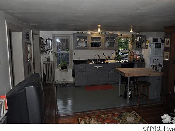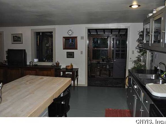 So much character! Charming home with open floor plan, 3 bedrooms with possible 4th, living room, dining room, kitchen with breakfast, great plank flooring, two story detached garage/barn, 2 sheds, nice yard complete with picket fence! Taxes reflect STAR savings.