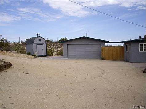 Yucca Mesa horse property on 2.5 acres.The main house has 2 bedrooms,1 bath and there is a studio in the back of the garage with one 3/4 bathroom.Seller is not aware if the studio is permitted,buyer to verify.Very nice shed on the property too and is partially fenced. Brokered And Advertised By: Cherie Miller & Assoc. Listing Agent: KATHY GEOGEA