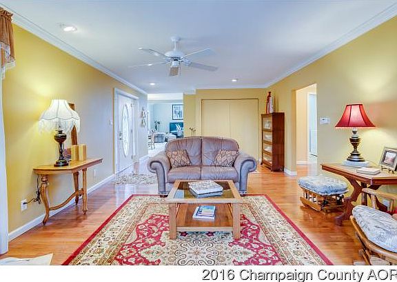 FABULOUS home just minutes from Champaign but in Mahomet School district!! This 1.5 story home is situated on 3 acres and offers a Quonset shed with loft and pole barn with 3 horse stalls. The home is open and airy and has had 2 additions added to this original beauty. Charming covered porch, spacious living room with hardwood flooring. Great room with floor to ceiling windows and skylights allows for an abundance of natural light. Kitchen with gleaming white cabinets and bar with seating is adjacent to formal dining room. Huge master suite with en-suite bathroom and multiple closets plus private access to oversized deck with an attached pergola. Don't like the bugs ... relax in the screened porch but still enjoy the views. 2 additional bedrooms, loft/office & full bath upstairs.