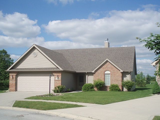 Charming Aboite Villa on quiet cul-de-sac with great views from its beautiful large windows. Ceramic tile in foyer, baths, laundry room and kitchen (no vinyl in the home) Open great room design with cathedral ceiling and stone floor to ceiling gas log fireplace. Master suite has window seat and elegant bath with double sinks, walk in shower, jet tub surrounded with marble and 2 walk in closets. Split bedroom floor plan has second bedroom suite with large walk in closet and private full bath. Sliding patio door opens to covered patio ready to enclose overlooking spacious back yard. Amber Lake Villas is a friendly community with very reasonable association dues that include mowing and snow removal of streets, sidewalks and driveways