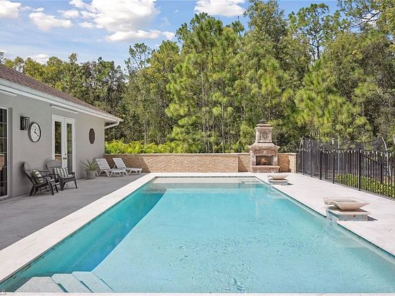 Your dream of living in paradise awaits you with this beautifully updated home on over 1.5 acres of land! Located in the highly desired Oakes Estates, you can enjoy the convenience of being near all the best amenities without sacrificing privacy. A long driveway through mature trees welcomes you to the front of the home, not visible from the street. A modern open floor plan is perfect for entertaining, with ample natural light throughout. Featuring 4 beds/3 full baths + an office, this home is full of sophisticated updates, including a reverse osmosis system (2019) and open lanai with pool/pool fence (2020). The kitchen showcases a large central island with dining table, two-tone cabinetry, glass tile backsplash, granite countertops, and chic pendant lighting. The main bedroom offers a spa-like ensuite bathroom and private lanai access. Enjoy the elegant pool and outdoor fireplace on the open lanai. This relaxing community has no restrictions, so all of your toys are welcome. With easy access to I-75, the SWFL International airport, world class dining, shopping, entertainment, beautiful white-sand SW Florida beaches and more, don’t miss the opportunity to call this home yours!