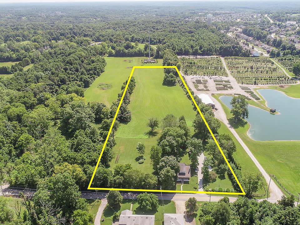 Owners are downsizing and hate to part with this gorgeous 6 plus acre property featuring a nostalgic, Louisville Highlands style, brick farmhouse. This home boasts nearly 1900 finished square feet, with an additional 950+ square feet in the unfinished basement. The house offers nine-foot ceilings, 4 bedrooms and 1 and 1/2 baths. It has a carpeted main level primary bedroom with private half bath and three additional bedrooms upstairs. Plenty of closet space throughout.This home also features a formal living room full of natural light, complete with a cozy wood burning fireplace (owners have never used). There is a formal dining room perfect for holiday gatherings and entertaining guests. The good sized kitchen featuring solid oak cabinets and an updated Samsung Range (existing GE
