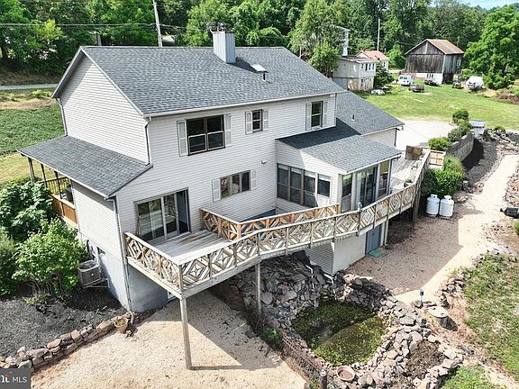 Come get away from the hustle and bustle of daily life and retreat to the country side. The seasonal views are amazing from the summer green, to the vibrant colors of fall and the winter views you can see as far as York. From fawns to deer you will enjoy the wildlife here. The wrap around front porch is the perfect spot for morning coffee to sit peacefully and listen the birds and the tranquility of no heavy traffic. The two story foyer opens to the living room with built in shelving. The family room is also off the foyer with a custom wet bar. The 3 season sun room with a vaulted ceiling has a rough in for a gas fireplace ready to be 4 seasons and opens up to the deck. The kitchen has a custom island an abundance of cabinetry and counter tops. The formal dining room has a brand new door that opens up to the deck for entertaining. The laundry is on the main level along with a half bath. The walk in closet off the primary bedroom is a room in its self-waiting for you to custom design it to fit all your clothes. The walk out lower level is huge with a finished room that could easily be a 4th bedroom or exercise room. The main components of this home have been recently replaced including the HVAC and a new roof just in the last few years. Just bring paint and make it your own. Nestled amidst 1.82 acres you can make all your dreams of outdoor living come true. Terraced landscaping beds waiting for your favorite flowers or garden vegetables. Beautiful perennial beds.Plenty of room for a pool and sport activities for summer fun with family and friends. The deck with a board walk goes over the top the fish pond with a huge waterfall (currently turned off because of the frog activity) Sitting on your deck throughout all the seasons will be amazing!!!! There is a storage room accessible from outside for hobbies, crafts or whatever your heart desires. All located on a private lane! Come take a look and make this retreat your own!!!!!