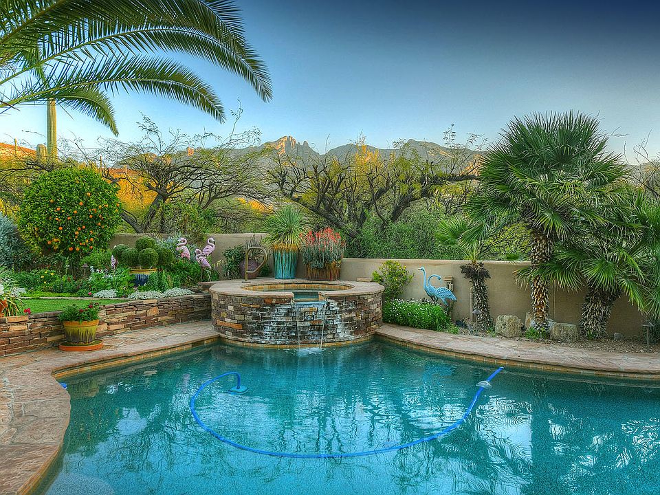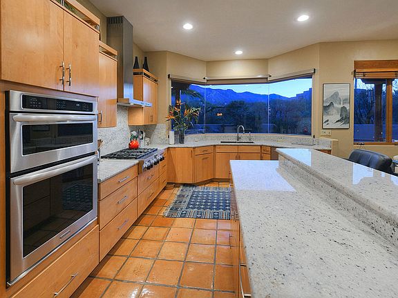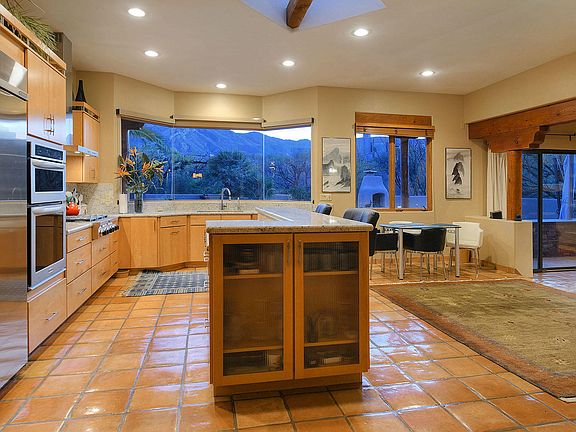 * VIEW VIDEO: https://www.facebook.com/PattyandRickHoward/videos/558748798327266/ * Contemporary Southwestern gem with beautiful, recently updated kitchen featuring huge windows to take in the Catalina Mountain views, ss appliances, custom cabinets, wonderful center island that doubles as a breakfast bar AND an eat-in charming breakfast nook, all open to a viga-beamed great room with cozy fireplace & glass doors that lead to the outdoor entertaining area complete with deep & cool shaded porch, built in BBQ, sparkling pool & heated spa, turf & lush ez care plantings. Back inside you'll find refinished saltillo tile throughout, formal living & dinging rooms, large master suite w/remodeled bath that includes luxe soaking tub, guest room split away from the others, heated/cooled garage & quality Pella windows throughout!