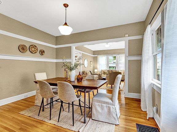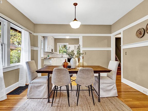 North Tabor Beauty, nicely updated with charm intact! Open concept living room, dining room, & kitchen with high ceilings & abundant light. Two nice-sized bedrooms on main floor with a full bathroom between. Spacious primary suite on upper level has walk-in closet, full bathroom, & perfectly placed skylights...you may never come downstairs again! A mudroom off the kitchen opens to the lovely private back yard - entertain, garden, play! Relax on the serene covered front porch, complete with old-school porch swing. Unleash your creative juices in the unfinished basement with great potential for multiple uses. Centrally located, with Tabor eateries, groceries, shops, & transportation at your beck and call! [Home Energy Score = 2. HES Report at https://rpt.greenbuildingregistry.com/hes/OR10222086]