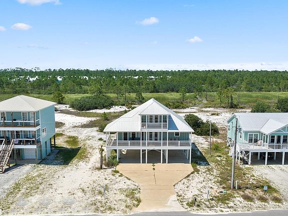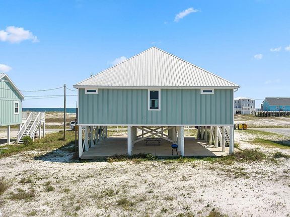 You'll definitely want to see this immaculate Gold Fortified four-bedroom, four-and-a-half-bathroom raised beach home, conveniently located within walking distance of the beautiful white sand beaches of Fort Morgan, AL. This home offers ample functional space for comfortable living and entertaining. With the capacity to accommodate up to 14 guests, it is an ideal investment property or second home for large families. The property boasts four master bedrooms, two balconies with breathtaking and unobstructed Gulf views. As you step inside, you'll immediately notice the open floor plan that seamlessly connects the living, dining, and kitchen areas. The spacious kitchen features beautiful granite countertops, providing plenty of space for preparing and serving meals to family and guests. The bar comfortably seats four, and the dining area is equipped with a stunning custom wood table that can accommodate up to ten people. On the main level you'll also find three generously sized bedrooms, two of which have built-in bunk beds. Each of the four bedrooms in the home has its own full bathroom. The second level of the home is dedicated entirely to the master suite and includes a private balcony with unobstructed views of the Gulf of Mexico, an attached bathroom with a double shower and double vanity, and a spacious air-conditioned 200 sq. ft. owner's closet with a keypad lock. Underneath the home, there is plenty of space for entertainment, an outdoor shower to rinse off the sand, and parking for up to six cars. This home is being sold fully furnished and move-in ready! Fort Morgan is a tranquil beach community that offers a peaceful retreat away from crowds and congestion. Additionally, there is a convenient boat launch and marina located at the end of Fort Morgan Rd. The home is currently being used as a short term rental and will not allow showings during the week. (Can only be shown on Saturdays) *site plan available for adding a pool in the backyard.