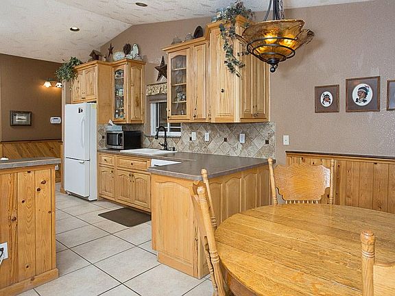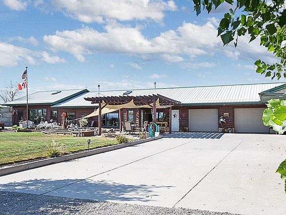This well planned 20 acre parcel is in a quiet location and it has it all! Beautiful 2455 sq ft ranch style 3 bedroom, 2 full bathroom home with 2 car attached garage, attached 34' x 34' heated shop and yet another 2 car oversize truck garage. Big enough for full size pickup. The home has a lovely open floor plan with hickory cabinets throughout, large living room, extensive master bedroom with jacuzzi tub and french doors to the patio. River rock highlights the kitchen cook stove vent on one side and gas fireplace on the other. Wood stove also for those who enjoy the warmth of wood heat. Very energy efficient too. Security system controlled from home or away by phone app. The flat spacious yard boasts a 40' x 80' - 4 bay shop (all with 14' automatic overhead doors) and an attached 22' x 80' pull through lean to. One bay of the shop is fully insulated with heat and water.