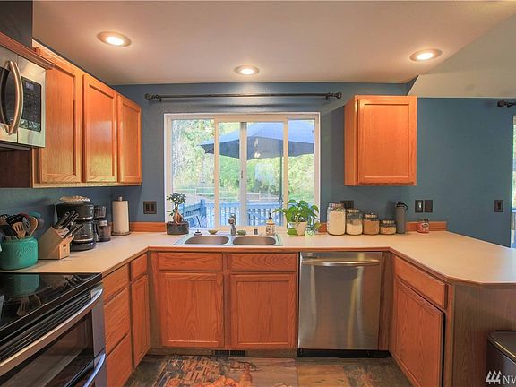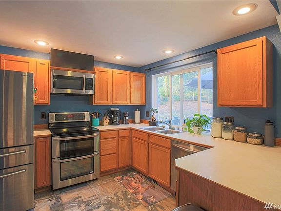 Job transfer forces the sale of this exquisite move-in ready home situated on 1.3 acres. This home is conveintly locted minutes away from the Southhworth ferry and Hwy 16. The spaceious eat in kitchen comes with updated stainless steel appliances. Step out of the kitchen onto the large deck and enjoy the eyecatching rock work that enchances the entire backyard, a large fire pit area and hot tub are perfect for entertaing or peacfully enjoying nature. Downstairs is a nice sized bonus room with a Whitfield pellet stove two additional good sized beedroms and a full bathroom. Upstairs next to kitchen is the family room with a wood burning fireplace and vaulted ceilings. Down the hall is the master bedrooom with bath and walk in closet.