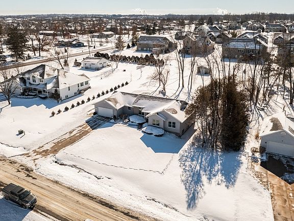 Nestled in the heart of a wonderful subdivision along a quiet street is this terrific ranch located on 1.05 acres (+/-) with a wooded backdrop yard. Wood flooring greet you in the foyer with terrific views of the vaulted great room that features a gas fireplace flanked by windows with views of backyard. The delightful kitchen features laminated flooring, breakfast bar, pantry closet, lazy Susan & all appliances remain. The sunny dining area retreats to the sun room with access to the patio and backyard. The kitchen also flows into formal dining room with volume ceiling & wood flooring. King sized master suite with walk-in closet and private bath with double sink vanity & separate tub/shower. Main floor laundry, lower level offers spacious family room with fourth bedroom, full bath, toy/exercise room & storage. Two car attached garage PLUS extra detached garage for lawn equipment or toys.