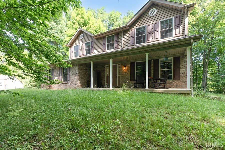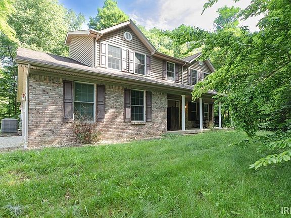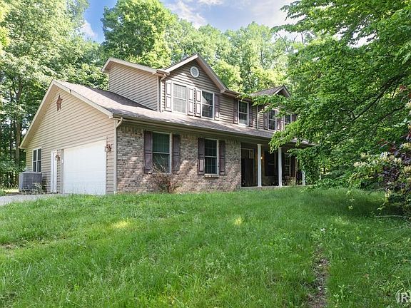 Welcome home to peace and serenity in this elegant two story home sitting on a 4.64 acre park like setting! Enjoy the private wooded driveway just off state road 158 leading up to this grand 5 bedroom, 2.5 bathroom home. The front porch is perfect for relaxing and watching the wildlife. As you walk through the front door into the foyer you will see the stairs leading to the second floor and straight ahead leads to the open concept kitchen and living space. The kitchen has lots of sunlight beaming through and comes complete with refrigerator, microwave, gas stove, and dishwasher. The sliding glass doors in the kitchen lead out to the back patio area with a hot tub that is included and mounted TV. In addition, on the main level is the primary suite, half bathroom and laundry room. The primary suite is very spacious and includes a jet tub, separate shower and walk in closet. Up the stairs you will find 4 additional bedrooms offering lots of closet space and another full bathroom. Need more space? No Problem! Downstairs there is plenty of possibility with the walkout basement with lots of open space to finish. Completing this home is an oversized two car garage with built in shelving. The 40’ x 30’ pole barn has electricity and water with a half bath. Come see this beautiful property today!