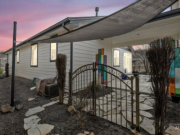 1406 square feet PLUS 113 square foot gorgeous sunroom used as an office. 1519 square feet in all! This home is NOT builder graDe this is CUSTOM grAde from the new paint to the patio, from the garage to great room and from the low maintenance landscaping to the whole house custom builtins. We even have a custom Murphy bed and work space, a covered patio and breezeway. Corner lot with a foothill view, fully fenced, 3 CAR epoxied GARAGE with built in workshop and storage. Just wait until you discover the custom window filled room extending the great room. Upgraded LVP, appliances, whole house fan and water softener. This thoughtfully upgraded Avimor home matches the equally thoughtful planned foothill community. You will discover lower taxes, closer to community amenities and a home far from average at 5811 Galloway.