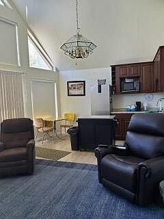 This charming 1 bed, 1 bath home offers a cozy retreat with a touch of rustic elegance. Situated on the serene backdrop of the golf course, the property invites you to indulge in tranquil living. As you step inside, you'll be greeted by the warmth of natural light cascading through large windows, illuminating the inviting living space. The open-concept layout seamlessly integrates the living area, kitchen, and dining space, creating an airy ambiance perfect for both relaxation and entertainment. Ascend the