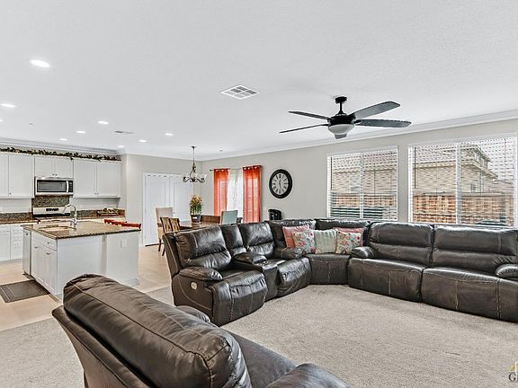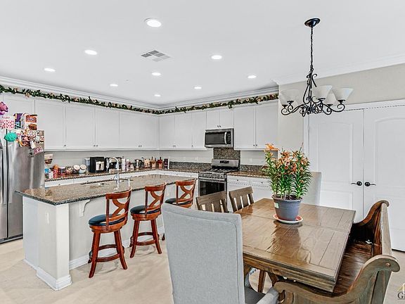 4-bed, 3-bath home in the cozy South West Bakersfield neighborhood. Step into the inviting living room, seamlessly connected to a well-appointed kitchen. Enjoy plush carpet, abundant natural light, and a soothing ceiling fan. The kitchen boasts granite countertops, white cabinetry, and stainless steel appliances. Each bedroom features modern colors and spacious closets. The restrooms showcase large vanity mirrors and contemporary fixtures. Outside, a spacious backyard awaits, with room for a covered patio and expansive side yards. Call before it sells