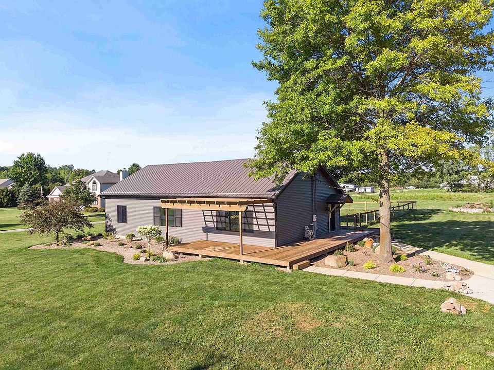 Accepted offer. Taking back up offers only. Rural living with all the modern living updates. This 3 bedroom 3 full bath 2408 Sq. ft. home sits on 2.78 acres with an additional 2.22 acres available. Home was totally renovated over the last 2 years. Here is partial list of updates: roof, windows, siding, flooring, kitchen, 3 full bathrooms, HVAC, water heater & softner/RO systems, well pump, appliances etc. This open concept home features a brand new custom kitchen with gas range and hood, huge quartz center island stainless appliances. Living room features custom built ins and large windows. There are two basements, one is new and the original has been waterproofed and new floor poured. The finished basement could be used as a living space OR as a 4th bedroom as it has a full bath and an egress window. There is a brand new wrap around front deck with pergola along with deck in the large fenced area off the rear corner of the home. There is a large 24x26 detached garage and a pole building as well. Fiber optic internet is available. The additional 2.22 acres is available for $40,000. Avg utilities are: Elec-$325/mo Gas-$70/mo, internet-$110/mo