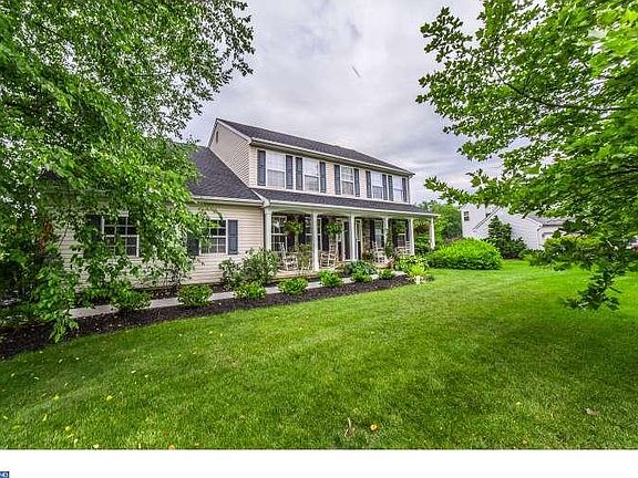 This is the best spot in the neighborhood - backs up to open space! You don't want to miss this chance of owning this Manor Deluxe model Colonial home. The exterior boasts beautifully crafted vinyl siding and stone walls. Upon entry, you shall experience the sunlight of a beautiful day by the wide row of windows displaying the beautiful green outdoor scenery. The walls, with classic moldings and neutral hues, are paired with classic six panel doors with brass hardware, and oak stair rails. Hardwood, tiled (ceramic in the upstairs bath and porcelain in the foyer, kitchen, and powder room), and carpeted flooring embedded throughout the home add vibrancy and class. The classic gas brick fireplace is set up to be converted to a wood burning fireplace if desired. The cabinetry in the kitchen and baths are humbly crafted and designed to suit any decorating style. Shelving is vinyl coated throughout. The kitchen also has a lot to offer. It has been installed with designer kitchen cabinets, stainless steel sink, laminated counter-tops, new self-cleaning gas range/oven and microwave, dishwasher, and no-wax vinyl flooring. The exquisite sizable master bedroom has cathedral ceilings, a sitting room, and a modern bath with double vanities, cultured marble sink, walk-in closet, and a soaking tub. The rear of the house has a large deck great for gatherings or to spend a relaxing and quiet day. Just wait until you see the view!