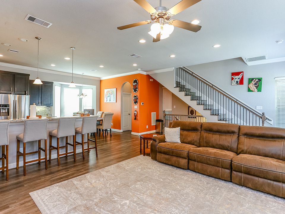 This 3-story, 2015-build home is located in a quiet Gated Community within minutes of the Medical Center and Downtown Houston. The home comes furnished. The open living room and kitchen area make this floorplan excellent for entertaining. The finely-detailed kitchen boasts granite countertops, stainless appliances, refrigerator, range, microwave and dishwasher. Washer and dryer are also included. Wood flooring throughout the second floor. Master suite is large with a walk-in closet, garden tub, and separate shower. The community is close to Metro rail, a Park with pool, & jogging trails. The Ring security system stays with the home.