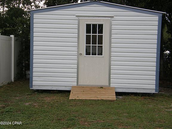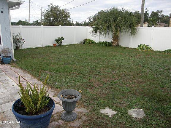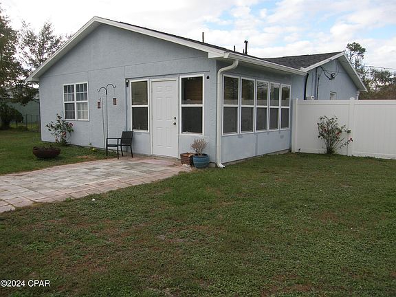 Comfortable 3 bedroom, 2 bath Stucco home with separate dining area, French doors lead into spacious den and adjoining tiled Florida room. Living area tiles with carpeted bedrooms. Smooth top range, built-in microwave, and refrigerator. Washer/dryer convey. Home is on double lot with privacy fencing and chain link. Large shed in back to store tools,. Home renovated in 1991. NEW roof and A/C installed in 2018. On-demand water heater. Close to Tyndall AFB, shopping, restaurants, and medical.