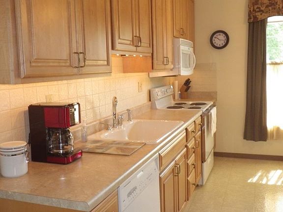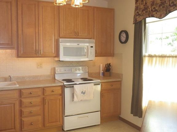 Easy to keep! Neat & tidy Oakbrook ranch. Updated Kitchen Kemper Maple cabinets in 2008 with pantry and pull out drawers! Cozy living room with vaulted ceilings and gas fireplace which opens up to a 3 season room. Updated bathrooms (2008), master with zero entry shower. New soaking tub in main bath! Furnace and A/C 2002.