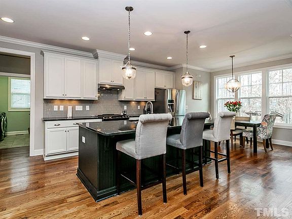 IMMACULATE CUSTOM HOME NESTLED ON A GORGEOUS WOODED LOT! Airy open plan, gourmet kitchen w/oversized island; Master suite with luxurious dressing room. Loaded with custom details: built-ins, ext millwork thru-out, upgraded lighting, freshly painted. Woods views from all rear windows. TONS of storage in 2 walk-in attics c/b finished. Private fenced yard w/playset incl! Near miles of greenway trails, parks, 2 pools; Heritage Golf Club, Swim, Tennis, Gym, & FIVE HIGHLY RATED CHARTER/PRIVATE SCHOOLS.