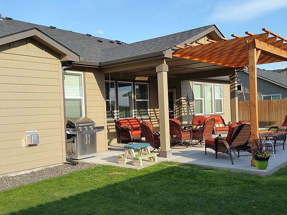 This is a ranch style home with center kitchen. It has stainless appliances, gas stove and fireplace, vaulted ceilings with fans. Exterior door in the Master and a soaker tub with a huge walk-in closet. Offers a 3 car garage and an 8 x 10 garden shed for storage. Has a center island for extra workspace and storage with a large pantry. Cabinets over the washer and dryer and sink in the laundry room. Den could be used for 4th bedroom. Open floor plan and ideal for entertaining with the addition of the covered patio and added pergola.