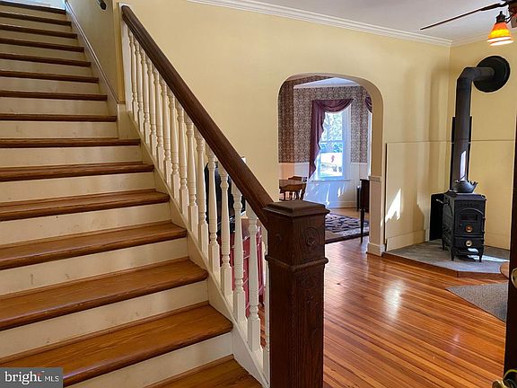 One of a Kind 3-4 BR 2 BA gorgeous Victorian farm house built in 1900! Well maintained through all the years, beautiful original HDWD floors, large amazing dining room with bay windows, updtd kitchen w/ table space and pantry, Liv Rm w/ cozy wood stove, and a 1st floor BR w/BA or use as family room, bannister staircase. The upper levels include Lg primary BR with either sitting room or perfect for nursery, another BR and full BA with clawfoot tub! Through the primary BR up a flight to a completely floored and high ceiling 3rd level..Use as play room and home office or a get away for workouts/ yoga. Off the kitchen is a lovely quiet, serene and private patio with walkway to driveway. The lower level is unfinished, but owners use for entertaining when the patio weather becomes inclement or to watch a football game (with an exit to rear and patio from LL). In addition, sit out on your large front porch with morning coffee and watch the world go by! She is amazing at 121 years old! Enjoy this well maintained home and enjoy the community, close to metro, shopping, restaurants, lake and hiking/biking trails.....