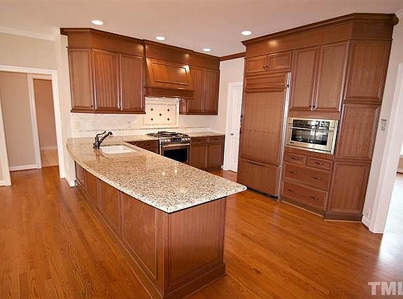Wonderful Ranch home with 5 Bedroom in North Raleigh neighborhood just minutes from 540, Shopping and RDU. Split bedroom plan provides the privacy needed for a large family. Fantastic chef's kitchen completely updated with new cabinets, tile, back splash,appliances and granite top. Master suite with walk ins and SPA like master bath. Updated Bathrooms! Basemt level includes wet bar, rec room plus to additional bedrooms. Resort feel in the back yard is complete with a sparkling pool. MUST SEE!!