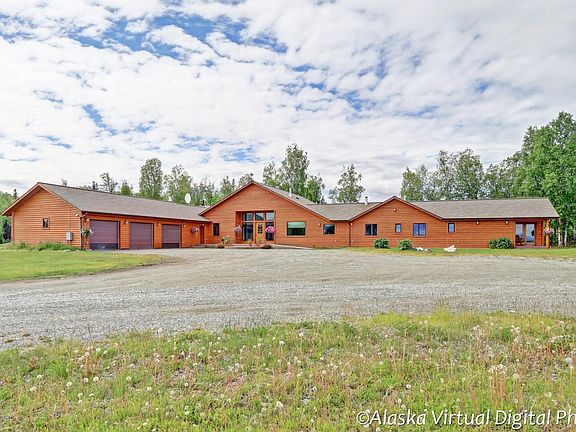 25 acres estate, located on beautiful Homestead Lake w/3,500ft of lake frontage.Features include enormous 3,750sqft Trex deck w/hot tub, grill room, swim & boat dock, grand entry, soaring trophy room w/ wired surround sound, family room, generator that will run the entire main house automatically when pwr goes out. Guest house w/640sqft offers 1 bdrm & 1.5 bath, a cleared area w/add'l 5 bed septic The property also offers a sleeping cabin with loft & Toyo heater plus 3 other outbuildings for storage. The main house has solid wood doors, central vac, granite countertops, Vivint alarm, tile flooring. Those that love the beauty of Alaska, a pristine lake with stunning views of the Chugach Range, the privacy offered by acreage, the wetlands ponds developed for retriever training, will find their bit of paradise at "High Flight" a renowned training center for retrievers. Seller willing to partially finance. Call for more information.
