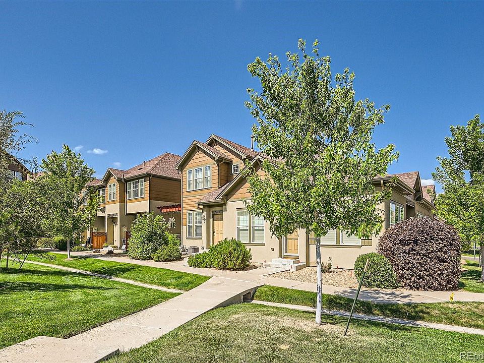 MOVE-IN READY!! Great opportunity to own this IMMACULATE 3 bedroom 4 bathroom home in Dancing Willows. As you enter the home you will be immediately impressed by the hardwood throughout the main level along with the stunning window treatments. The large Kitchen is perfect for preparing those big meals, complete with island, granite countertops, maple cabinets, walk-in pantry, double oven, under cabinet lighting and GE Profile stainless steel appliances. Entertain in the 15 x 15 sq ft Living Room with custom lighting and decorative wall feature above the gas fireplace or enjoy meals in the formal dining space adjacent to the secluded patio, complete with pergola and stamped concrete. The upper level has newer carpet, three bedrooms, 2 baths, a loft and the laundry room. Enjoy the 5-Piece Primary Bath with walk-in closet, granite countertops and tile surround tub and shower with the convenience of the upper level Laundry Room just down the hall. The two Guest Bedrooms and loft share the Full Bath. For large gatherings head to the finished basement with 687 sq ft of finished space. The half-bath has additional plumbing to convert to a 3/4 or full bath with some minor drywall changes. Dancing Willows offers a pool, hot tub spa, clubhouse, walking trails and has great proximity to C-470 and nearby shopping. The exterior of each home is maintained by the HOA including roof, walls, window wells, and patios. CLARIFICATION - The clubhouse and pools are responsibility of the Metro District. IMMACULATE CONDITION!