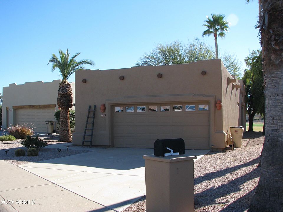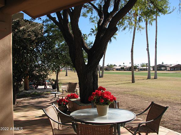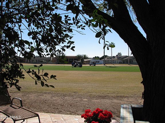 Beautiful Golf Course site built home. Home features fresh exterior paint, New foam Roof December 2021, New Tile patio Roof January 2022. Oversized garage with room for a golf cart. Roller shield shades on west facing windows. Gorgeous Saltillo tile floors in pristine condition. Two large bedrooms, two baths. Second bath features a whirlpool tub. Large open great room with 12 foot ceilings and huge windows to take in the golf course views. Gas fireplace in Great Room. Open kitchen features an island for easy entertaining. Large formal Dining room with slider to the tiled patio. This home is great for lock and go seasonal living. Lighted pot shelves to display art collections. Wonderful Apache Wells 55 and older community featuring golf, club house, and amenities. HOA includes amenities excluding golf membership or club social membership. HOA includes Garbage pickup 2 times a week and all Rec facilities including wood working shop, tennis, pickle ball, and many more amenities.