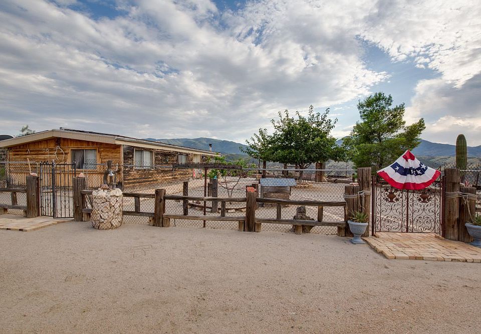 Curb appeal is an understatement. The views of the Pinal Mountains from this magnificent 15 acre parcel will leave you speechless. Charming from the outside with rustic wood siding, paver pathways and wrought iron gates. Loaded with character, this 2 bedroom, 2 bathroom home is turnkey and ready to be loved. The kitchen boasts abundant cabinetry, a breakfast bar and double ovens. Outside, enjoy the scenery from beneath the cabana and bask in the warmth from the wood burning fireplace. **Future income potential if 15 acres is too much to manage! Due to the recent monsoons, a 4 Wheel Drive is needed to travel up the dirt road to subject property.