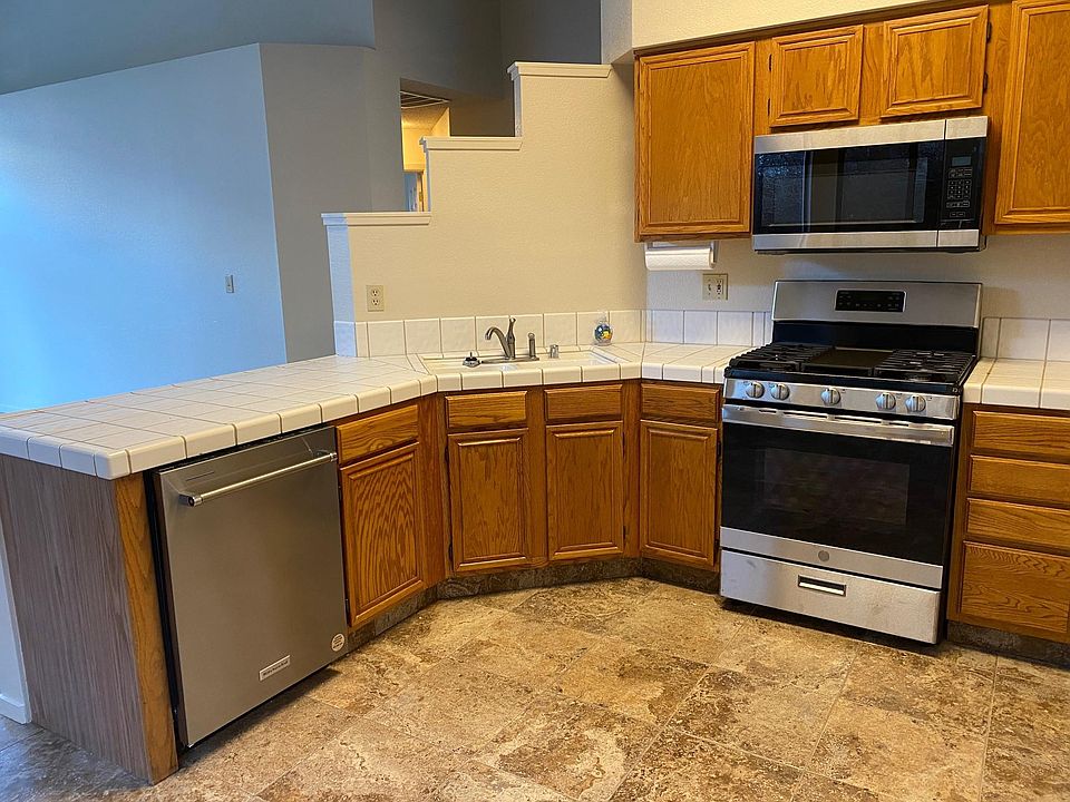 Terrific 3 bedroom 2 bath on a single level with a 2 car garage. 16x16 tile floors in entry, living room, kitchen, hall & laundry. No wasted space here, so it feels larger. Living room with wood burning fireplace and decorator pot shelf. Nice kitchen with gas stove, microwave, refrigerator, dishwasher. Laundry includes washer and dryer. Master bedroom has a walk-in closet. Nice private yard w/ a patio, lawn area and raised shrubs. New roof coming soon. Owner is licensed real estate agent. Pics soon
