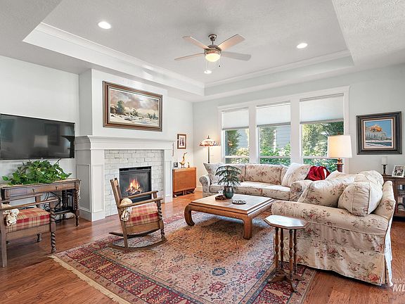 Welcome home to this beautiful single level house in the heart of Northwest Boise. The open concept great room area is fantastic. Boasting custom cabinets, solid quartz countertops, stainless steel appliances, a spacious pantry, and a large island, the kitchen is perfect for entertaining. Beautiful hardwood floors flow from the entry through the great room, kitchen, and dining area. The primary suite is perfect for relaxing with an ensuite bathroom featuring dual vanities, a soaker tub, a walk-in closet, and a full tile shower. Don't miss the flex/tech room in addition to the 3 bedrooms, maximizing the use of space. Within close proximity to shopping, restaurants, parks, outdoor recreation and more, this location can't be beat. Nestled between the Boise foothills and the recreational Greenbelt, you don't want to miss this amazing home!
